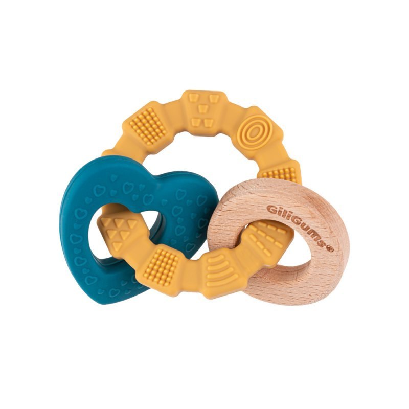 Ucz maluszka miłości do natury od pierwszych dni jego życia! Gryzaczek serce to kolejny wzór z drewnianej kolekcji Giligums. Został on wykonany z drewna bukowego i bezpiecznego silikonu. Gryzak składa się z pierścienia o nieregularnych krawędziach i dwóch przymocowanych do niego zawieszek: drewnianego kółeczka oraz silikonowego serduszka. Wypustki o zróżnicowanych kształtach, które zdobią gryzak, przyniosą ulgę maluchowi, delikatnie masując obolałe dziąsła.