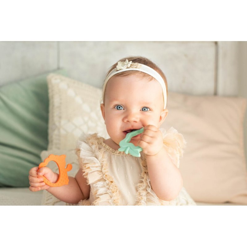 Zestaw silikonowych gryzaków w uroczym, owocowym wydaniu zapewni podwójną pomoc w ząbkowaniu. Gryzaki łączą w sobie walory estetyczne i praktyczne. Ozdobione wypustkami, podczas gryzienia delikatnie masują dziąsła, a ich kształt oraz otwór ułatwiają małym rączkom chwytanie gryzaków. Wykonane w 100% z bezpiecznego silikonu