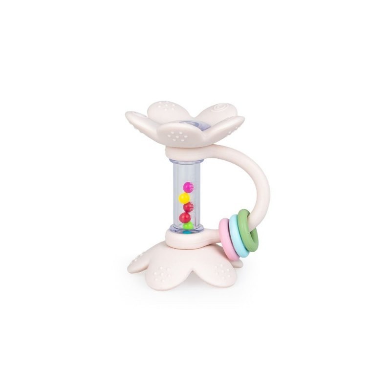 Grzechocząca pałeczka, ozdobiona silikonowymi kwiatkami, wprawi malca w dobry nastrój, bawiąc wesołym dźwiękiem! Zabawka, poza kolorowymi koralikami, wyposażona została także w ruchome obręcze do przesuwania i praktyczny uchwyt, ułatwiający trzymanie zabawki. Za sprawą wypustek znajdujących się na płatkach, kwiatki sprawdzą się w roli gryzaka, przynosząc ulgę obolałym dziąsłom ząbkującego bobasa.