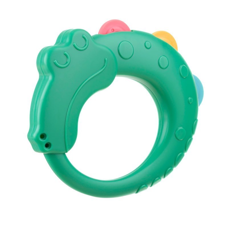Grzechotka krokodyl została zaprojektowana specjalnie dla najmłodszych dzieci. Wykonana z trwałych i bezpiecznych materiałów. Nie posiada ostrych krawędzi. Odpowiednio dobrany kształt grzechotki sprawia, że jest wygodna do uchwycenia i utrzymania w małych rączkach. Specjalne wypustki stymulują zmysł dotyku u niemowlaka. Rozwija koordynację wzrokowo-słuchową. Produkt całkowicie wolny od bisfenolu A (0% BPA).