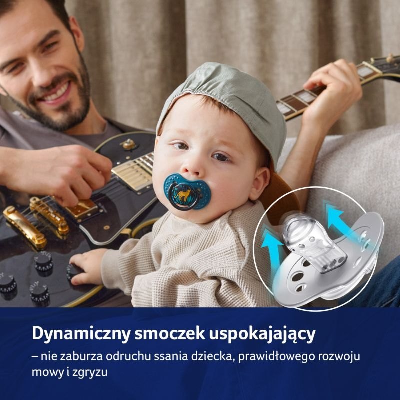 Wybierz smoczek silikonowy dynamiczny LOVI 0-3 m 2 szt. Jungle Vibes Boy! Ponieważ ochrona laktacji i promowanie karmienia piersią jest misją marki LOVI, smoczek dynamiczny 0-3 m Jungle Vibes Boy nie zaburza odruchu ssania oraz rozwoju mowy i zgryzu.*