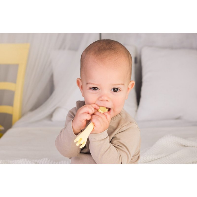 Pierwsze posiłki będą smakowały podwójnie dobrze z tą zabawną, silikonową łyżeczką w kształcie żyrafki! Jej kształt jest idealnie dostosowany do małych rączek, co ułatwi dziecku samodzielne posługiwanie się łyżeczką.