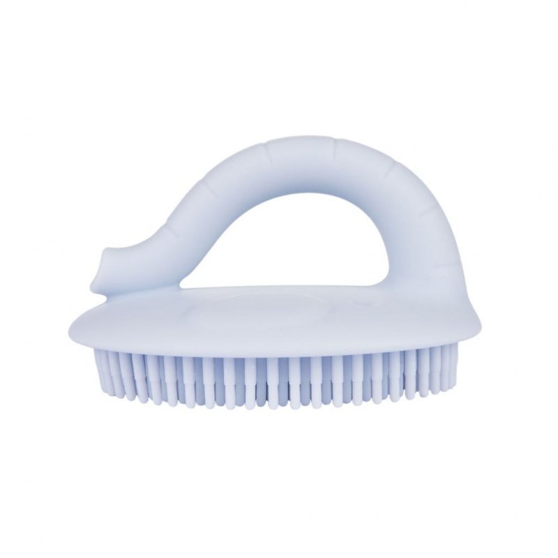 Myjka do mycia ciała w kształcie słonika jest miękka i przyjemna, a silikonowe wypustki delikatnie myją i kojąco masują skórę dziecka.