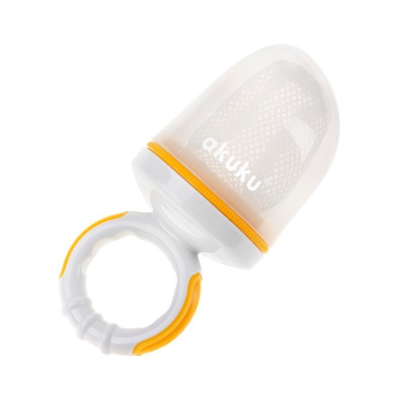 Siateczka do podawania pokarmów marki „akuku” służy do bezpiecznego podawania nie tylko świeżych owoców, ale także warzyw, sera czy ciastek. Szczególnie przydatna w momencie przejścia do jedzenia posiłków w postaci stałej. Likwiduje ryzyko zakrztuszenia się niedokładnie pogryzionymi kawałkami pożywienia. Idealna do małych rączek dziecka. Świetnie sprawdza się na spacerach czy w podróży. W zestawie kapsel chroniący siateczkę przed zabrudzeniem. Podczas ząbkowania może posłużyć również jako gryzak. Łatwo się myje. W zestawie zapasowa wymienna siateczka. Produkt całkowicie wolny od bisfenolu A (0% BPA).