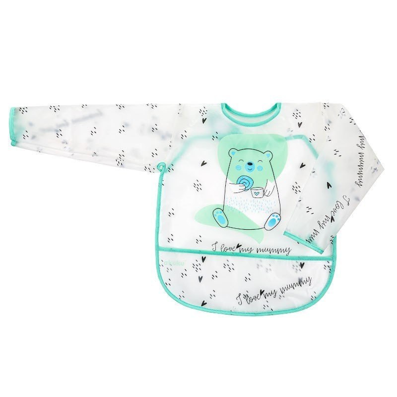 Fartuszek dziecięcy z rękawkami skutecznie ochroni ubranka Twojego dziecka przed zabrudzeniem w trakcie jedzenia i podczas zabaw. Wykonany z lekkiego, miękkiego oraz łatwo zmywalnego tworzywa EVA. Wyposażony w dużą kieszeń, która zatrzymuje resztki pokarmu. Posiada także wygodne zapięcie na rzep. Łatwy do utrzymania w czystości. Wystarczy zaraz po jedzeniu umyć śliniaczek w ciepłej wodzie z mydłem dla dzieci.