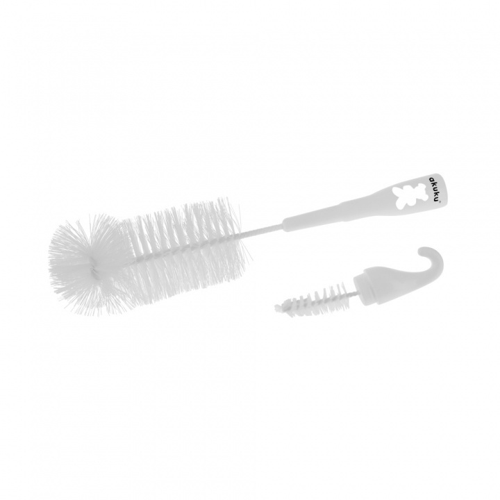 Zestaw specjalnie zaprojektowanych szczotek (duża i mała) do dokładnego mycia butelek i smoczków. Pozwalają na precyzyjne usuwanie zabrudzeń w trudno dostępnych miejscach. Szczotka wykonana jest z trwałych i bezpiecznych materiałów, nie zawierających bisfenolu A.