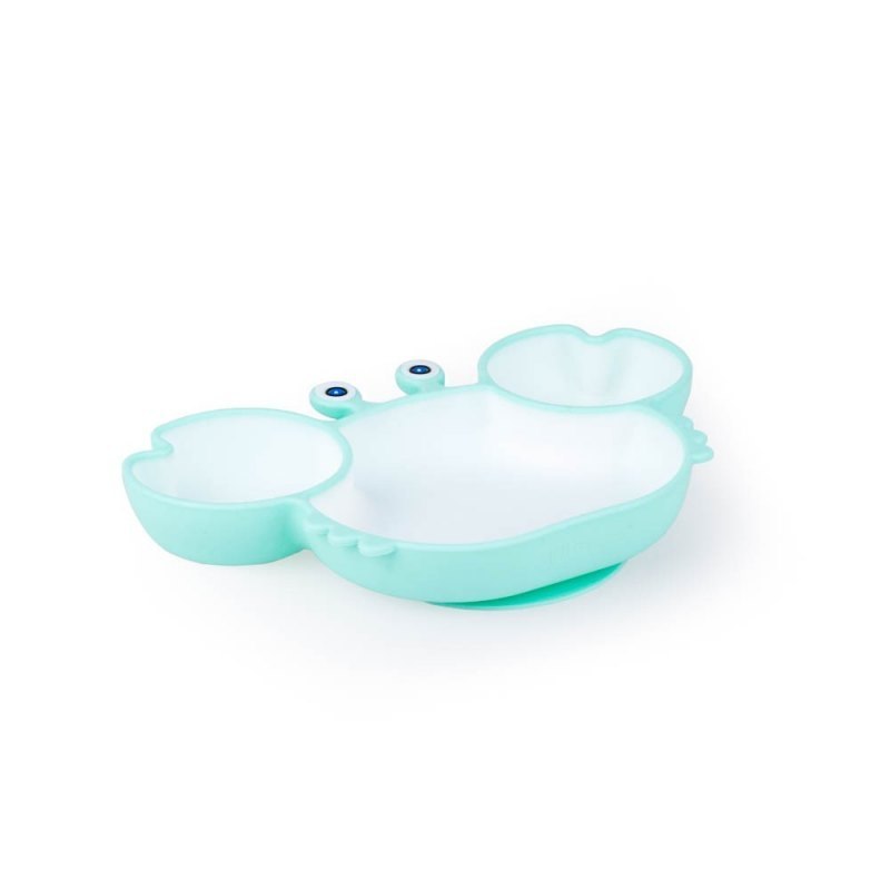 Krabik rozweseli malucha, umilając tym samym czas posiłku! Talerzyk posiada trzy przegródki, które dodatkowo odznaczają się innym kolorem, co ułatwia wyodrębnienie jedzenia. Pomoże to dziecku odkryć kolor, fakturę i kształt poszczególnych składników posiłku. Praktyczna przyssawka umożliwia przymocowanie talerzyka do stoliczka, aby zapobiec jego niekontrolowanemu przesuwaniu się.