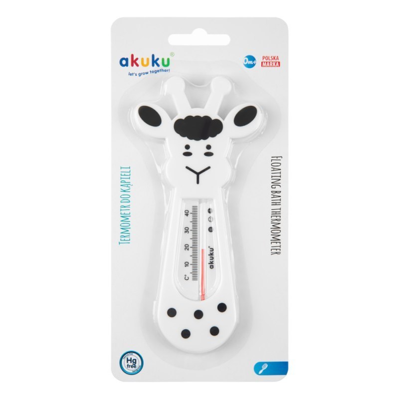 Termometr do mierzenia temperatury wody „akuku” dzięki czytelnej skali pozwoli dokładnie zmierzyć temperaturę wody, a ciekawy kształt będzie atrakcją podczas kąpieli dziecka. Kolor czarno – biały stymuluje rozwój wzroku we wczesnym okresie od narodzin. Wykonany z bezpiecznych i trwałych materiałów. Bezrtęciowy. Funkcjonalny i wygodny w użyciu. Kolory czarno – biały stymuluje rozwój wzroku we wczesnym okresie od narodzin.