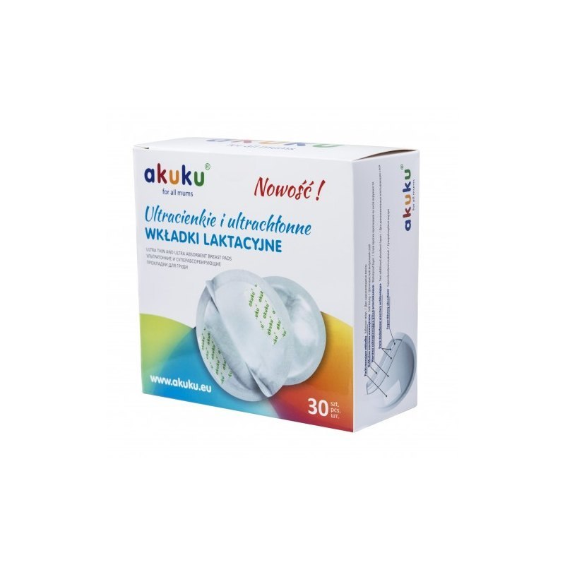 Ultracienkie, ultrachłonne wkładki laktacyjne „akuku, wygodne i dyskretne, wyprofilowane. Chłonność wkładki to zasługa absorbentu i aż 2-dodatkowych warstw wchłaniających. Unikalna technologia pozwoliła stworzyć wkładki niezwykle cienkie, o grubości zaledwie 1mm.