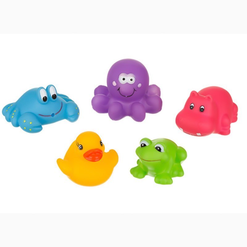 Zestaw 5 ślicznych, kolorowych zabawek do kąpieli.
