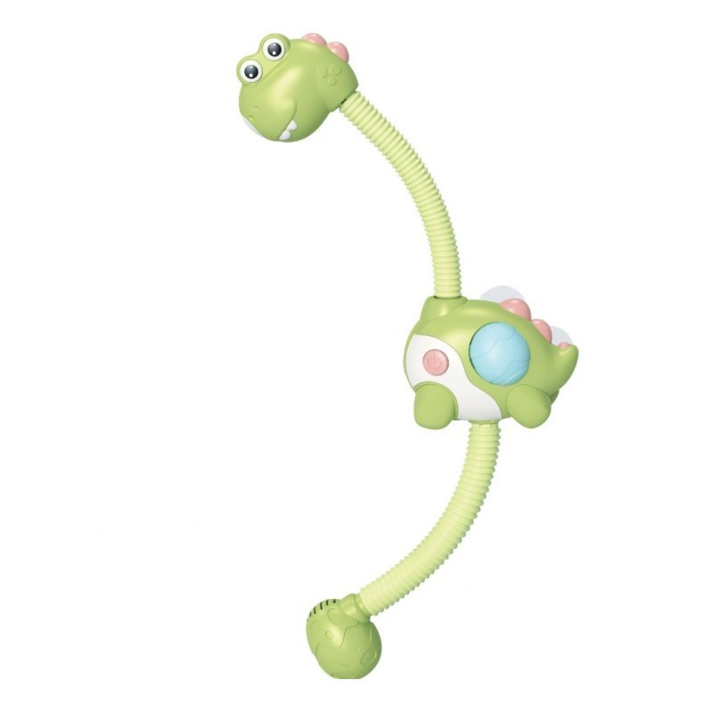 Czas na prysznic z zakręconym Dino, którego oczy wirują jak szalone! Przymocuj tego wesołka do ściany wanny za pomocą przyssawek, umieść pompkę w wodzie i naciśnij przycisk, aby uruchomić prysznic. Szyja zwierzaka jest giętka, dzięki czemu możesz zmieniać kierunek wytryskiwania wody. Na dinusiowym brzuchu znajdziesz niespodziankę – wyjmowaną piłeczkę, która zmieni się w psikawkę, gdy tylko napełnisz ją wodą. Zabawka posiada akumulator, w zestawie znajduje się kabel USB do ładowania.