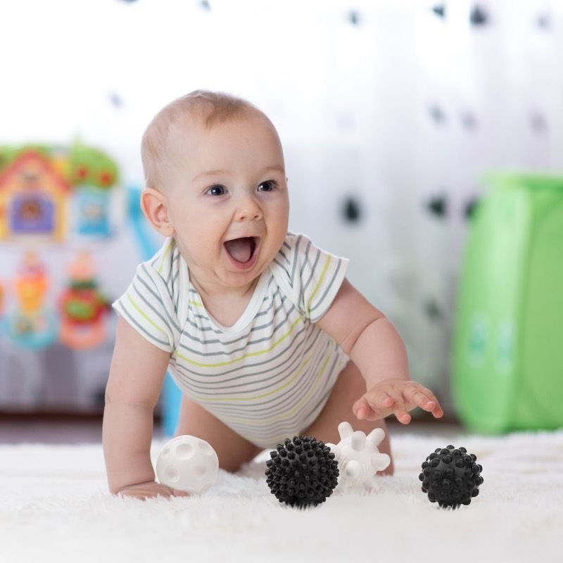 Idealne do tego są piłeczki sensoryczne „akuku”. Świetnie sprawdzą się podczas zabawy. Ich unikatowe kształty i struktura umożliwiają masaż i rozluźnienie napięcia mięśniowego. Zalecane przez fizjoterapeutów. Dostarczają wielu wrażeń czuciowych. W dodatku czarno-białe kolory doskonale stymulują wzrok niemowlaka, gdyż w pierwszych miesiącach życia dziecko nie rozróżnia barw. Piłeczki posiadają dziurki, dzięki czemu zabawa w wodzie będzie jeszcze fajniejsza.