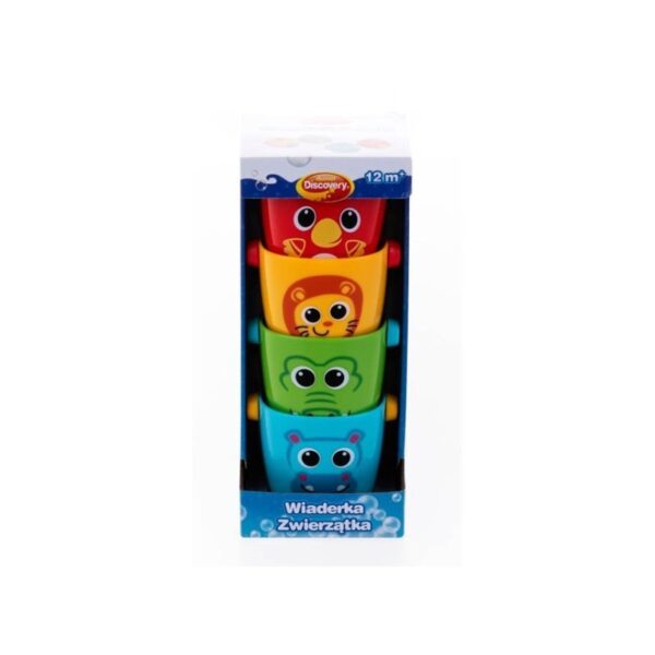 Wiaderka Zwierzątka Zestaw czterech kolorowych wiaderek to pomysł na kreatywną zabawę! Każde z nich zdobi inny obrazek z cyferką, a dodatkowo, posiadają one zróżnicowane otwory na spodzie. Dzięki temu, kiedy nabierzemy w wiaderka wody, każde z nich będzie ją przelewało w inny sposób! Ta uniwersalna zabawka sprawdzi się nie tylko podczas kąpieli, ale także…